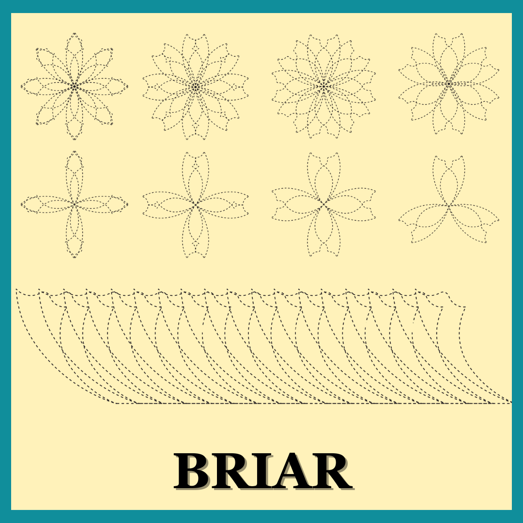 Laser cut from 1/4 inch acrylic, this template is designed for ruler work and safe on long-, mid-, and short-arm machines — both stand-up and sit-down. It’s also compatible with high shank home machines (with the proper ruler foot attached). Ensure your ruler foot clears 1/4 inch acrylic; if not, consider thinner options like 3/16 inch or 1/8 inch templates. Can also be used for tracing or drawing designs.